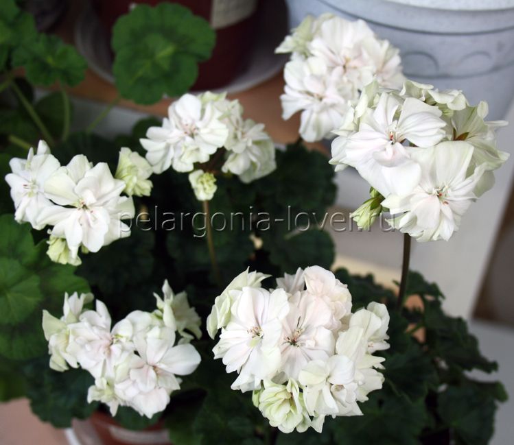 Крупные махровые белые цветы с зеленоватыми, кремовыми и розовыми оттенками. Окраска цветов зависит от условий: на солнышке оттенки розового более выражены. Растет медленно, наращивает маленький пушистый кустик, цветет охотно и обильно. Настоящая жемчужина сортосерии Brookside для любителей светлого, нежного, воздушного!