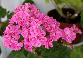Миниатюрная махровая зональная пеларгония.