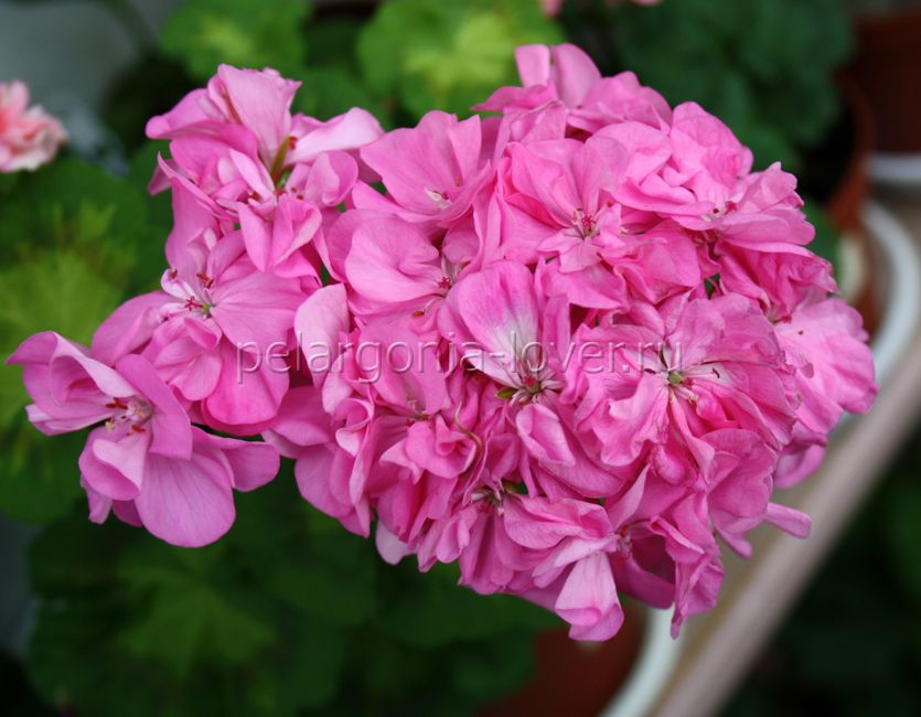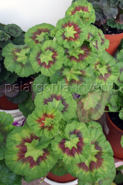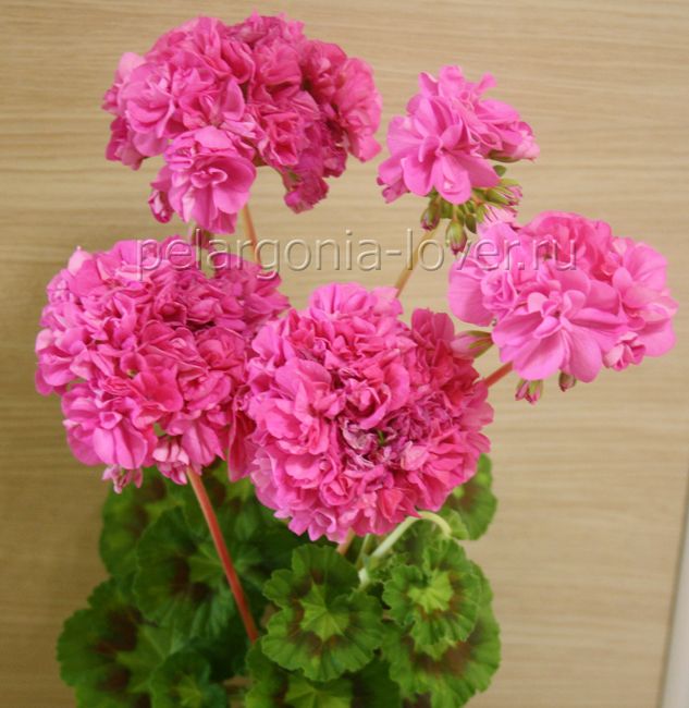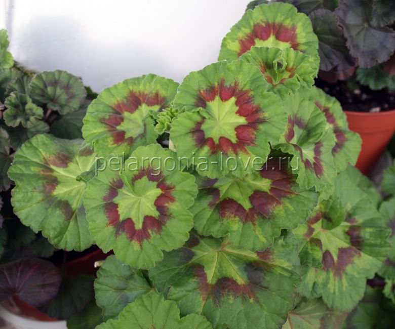 Карликовая махровая пестролистная зональная пеларгония.